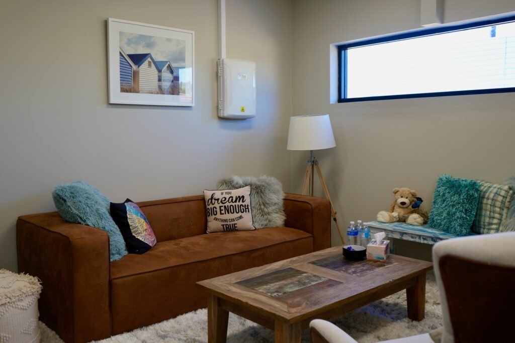 A calm, private space designed for supportive 1:1 work, small family sessions, supervision, and telehealth calls. Comfortable, warm, and grounded — exactly the environment your clients deserve.